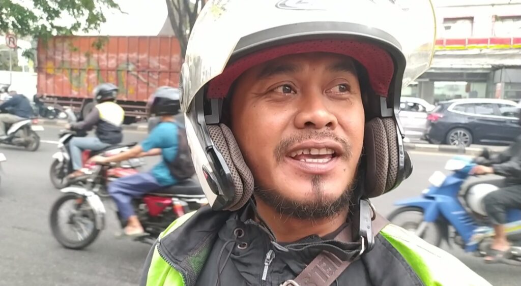 Salah satu Ojek Online penerima Takjil dan Nasi Kotak mengapresiasi kegiatan sosial DKN Garda Prabowo